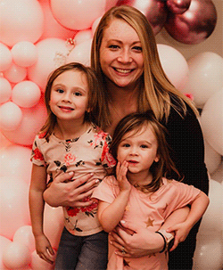 At 32, she’ll sometimes use a rolling walker at night, when her muscles are most fatigued. Long nights out with friends are taxing. Chasing her two little girls around isn’t always feasible.