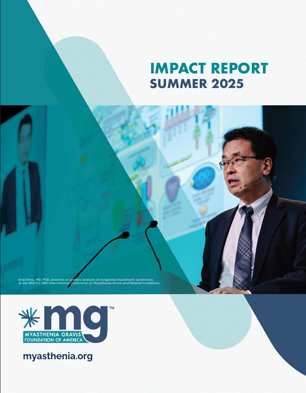 Thanks to the kindness of our donors, supporters, and volunteers, the Myasthenia Gravis Foundation of America continues to make a significant impact in the MG community. Every year, we produce an Impact Report that details exactly how the generosity of our community helps us get closer to a world without MG. We invite you to read through our Impact Reports and as always reach out if you have questions or want more information.
